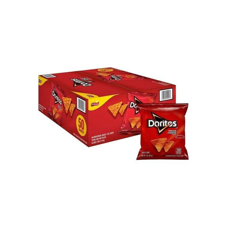 Doritos Nacho Cheese chips deliver bold flavor and crunch in every bite. Perfect for on-the-go snacking. Individually packaged for freshness.