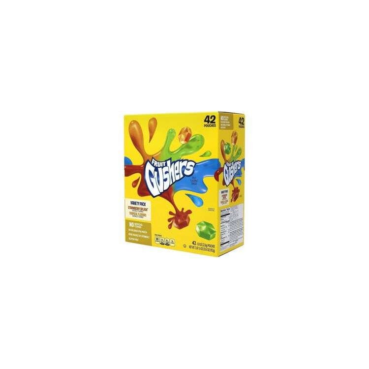 Gushers Club Variety Pack offers fruity gummies in Tropical and Strawberry Splash flavors. Gluten-free gelatin-free only 90 calories per pouch. 42 packs per case.